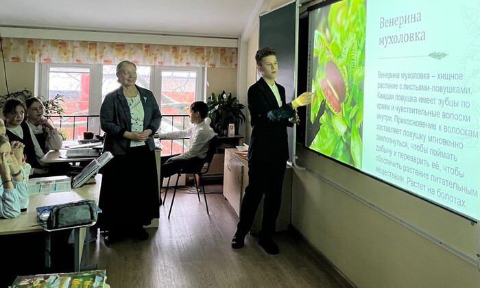 Ученики 8 класса тоже порадовали своего требовательного учителя, а это - не мало! Их доклады были посвящены многообразию природы России. Делясь друг с другом сообщениями о заповедниках и природных памятниках от Арктики до степей Оренбуржья, ребята в очередной раз убедились, как обширны и богаты просторы нашей страны.